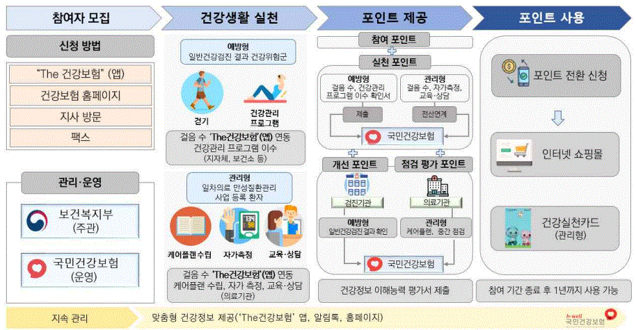 관리형 : 걷기, 케어플랜 수립, 자가측정, 교육, 상담, 점검 및 평가에 참여하면 포인트가 적립이 가능하며, 1년 동안 최대 80000포인트 적립이 가능합니다.