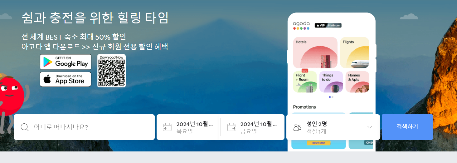 아고다 앱다운로드 후 신규회원전용할인혜택을 받으면 최대 50% 까지 할인받을수 있습니다.