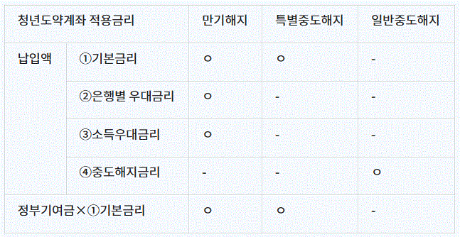 * 이자 : 기본금리 + 은행별우대금리 +소득우대금리 + 중도해지 금리 가 적용됩니다.